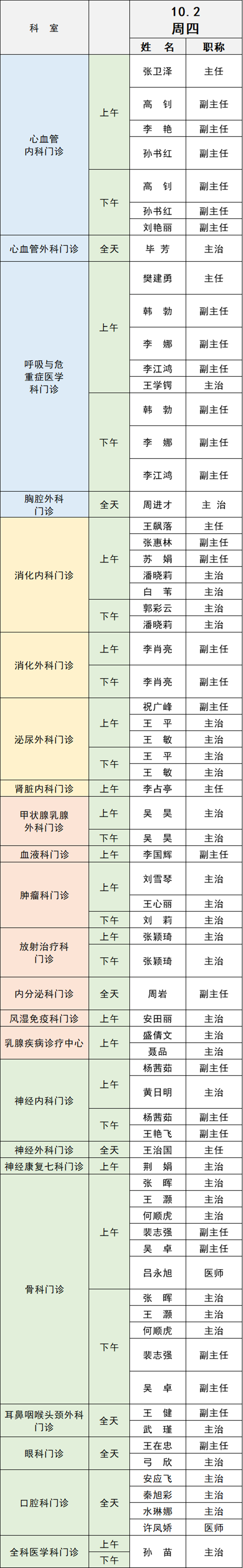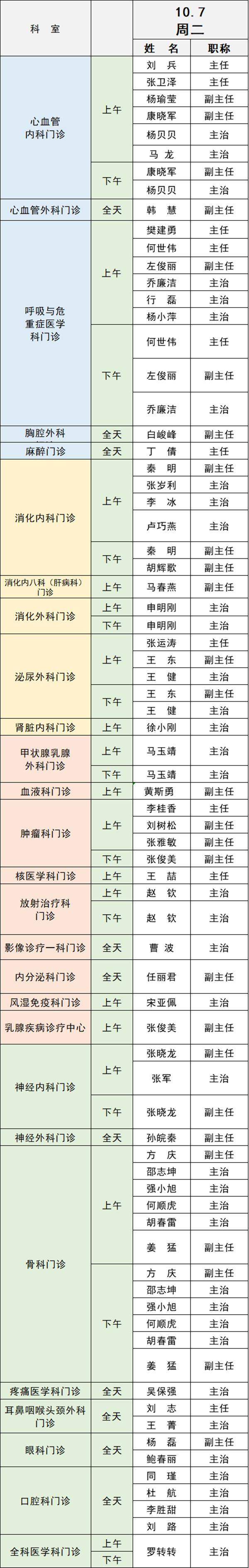 备注:实际出诊情况以医院挂号平台实时信息为准。